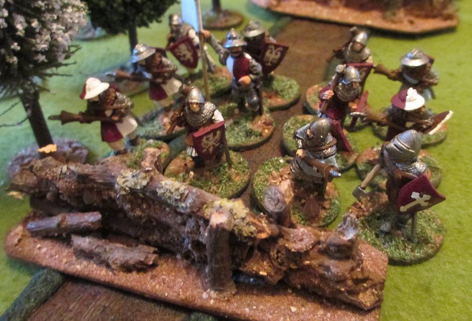 The first goblin "command" arrives on the table, with orders to cross the ford and capture the earth and log barricades.