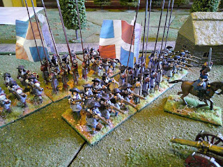 The French managed to drive back the rearguard but made little headway against the increasing numbers of Allied infantry that arrived as the game progressed. The large force of French cavalry never really got into the fight, although they did beat the Allied cavalry pretty convincingly. Since the fighting had moved so far down the table by the time they arrived, the French reinforcements did not have any effect by the time the game ended.