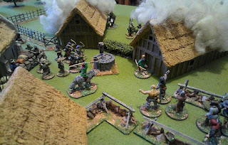 Anyway, these changes seemed to work okay for this game, but I shall keep experimenting with it. Altering a set of rules does not always work! I played the game solo and the East March won, although at one point I thought the West march was going to do so. The game was much more medieval than fantasy as only two goblin units were involved; the rest of the units were humans. Figures were nearly all Essex25mm metal medieval.